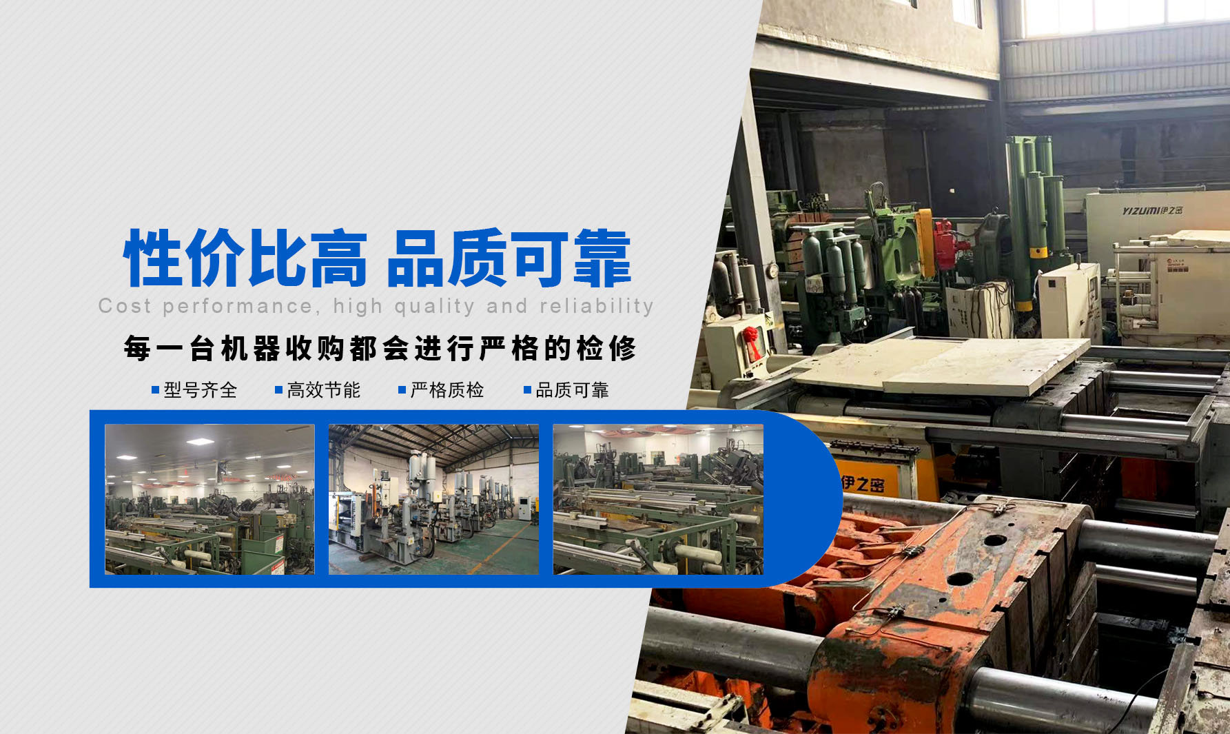 ? ? ? ? 在當今市場競爭如此激烈、產(chǎn)品利潤日漸微薄的嚴峻形勢下,優(yōu)質(zhì)可靠的二手壓鑄機尤為凸顯其順應(yīng)壓鑄行業(yè)市場的極大優(yōu)勢,我們限度的為客戶減少項目投資風險、降低投資成本、優(yōu)化整合運作資金。同時,盤活閑置二手設(shè)備,創(chuàng)造社會剩余價值,為推動我國循環(huán)經(jīng)濟建設(shè)貢獻力量!